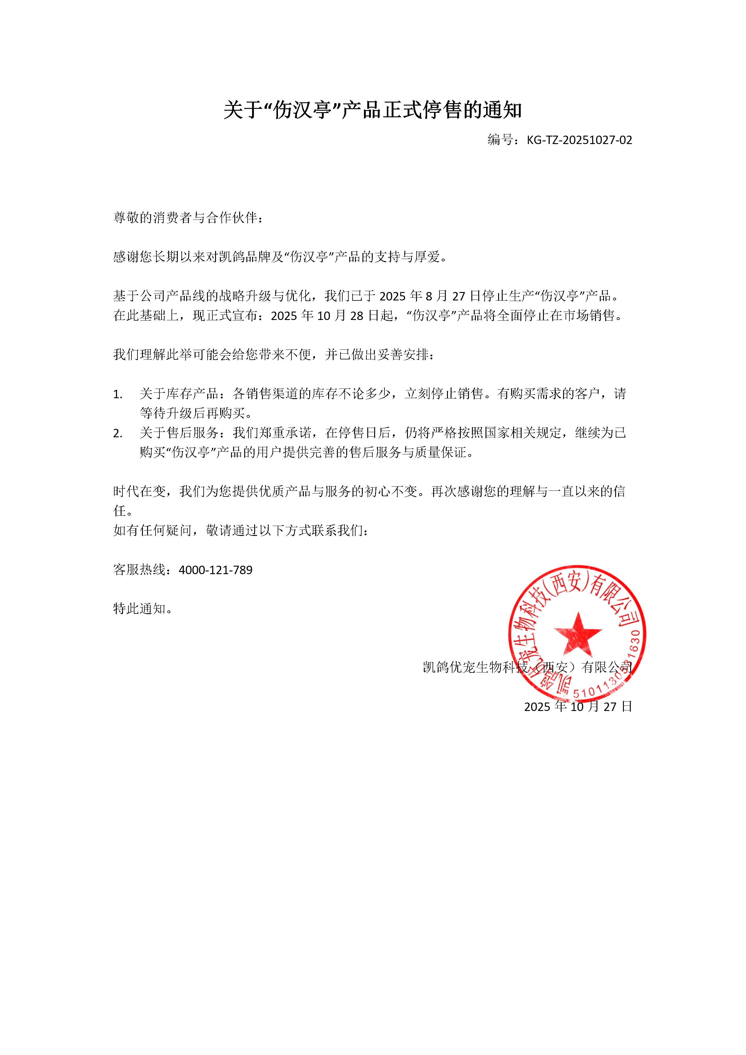 - 上一篇:关于“伤汉亭”产品停产的通知
