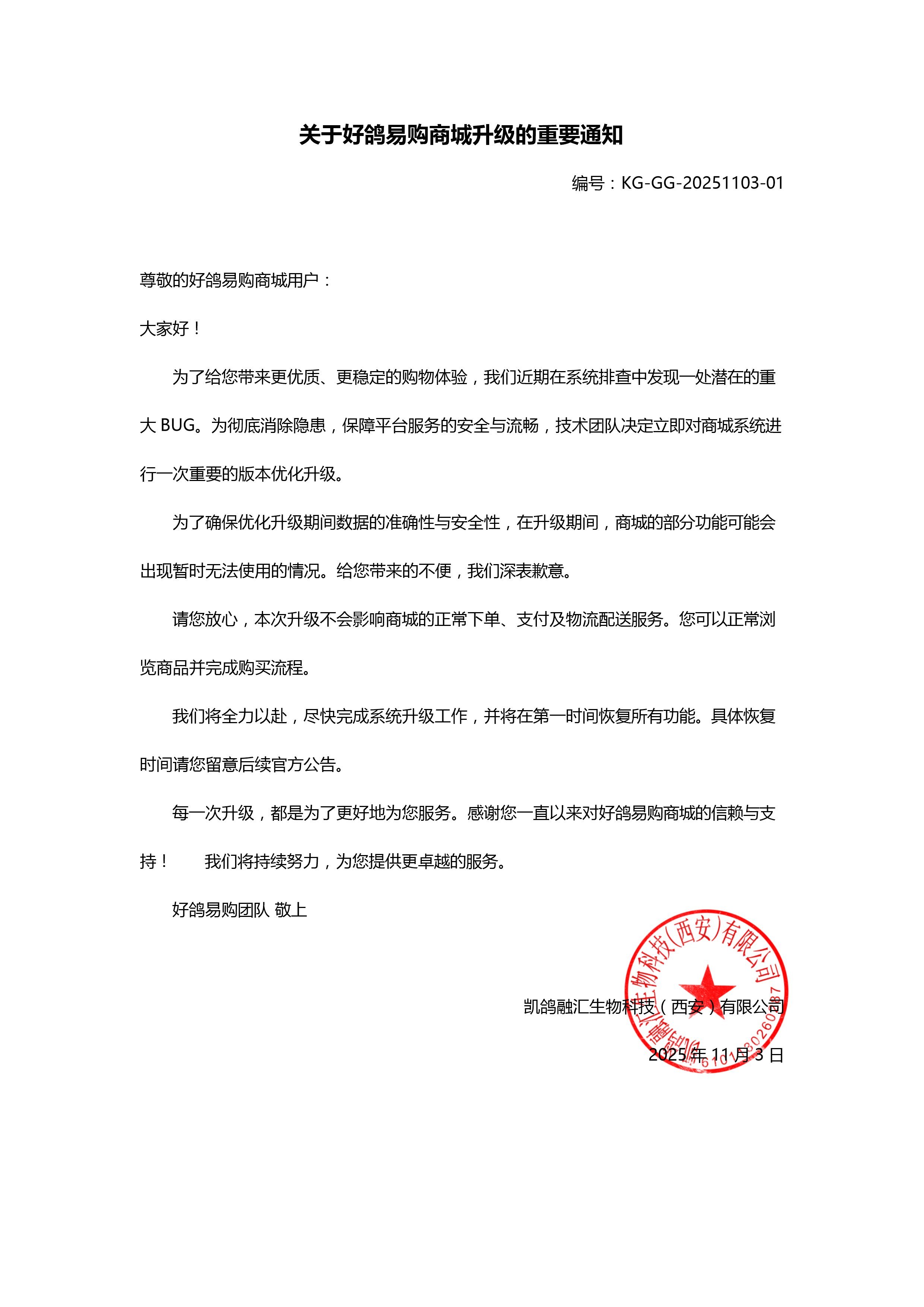 本网站为凯鸽优宠⽣物科技(西安)有限公司(以下简称“凯鸽”)拥有、管理和维护。使用本网站前请您仔细阅读以下条款,使用本网站则表明您已知悉并接受这些条款,如果不接受这些条款请停止使用本网站。对于违反这些规则的行为,凯鸽有权采取法律和公平的补救措施。