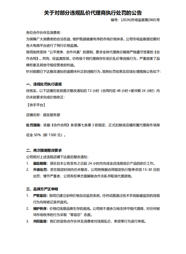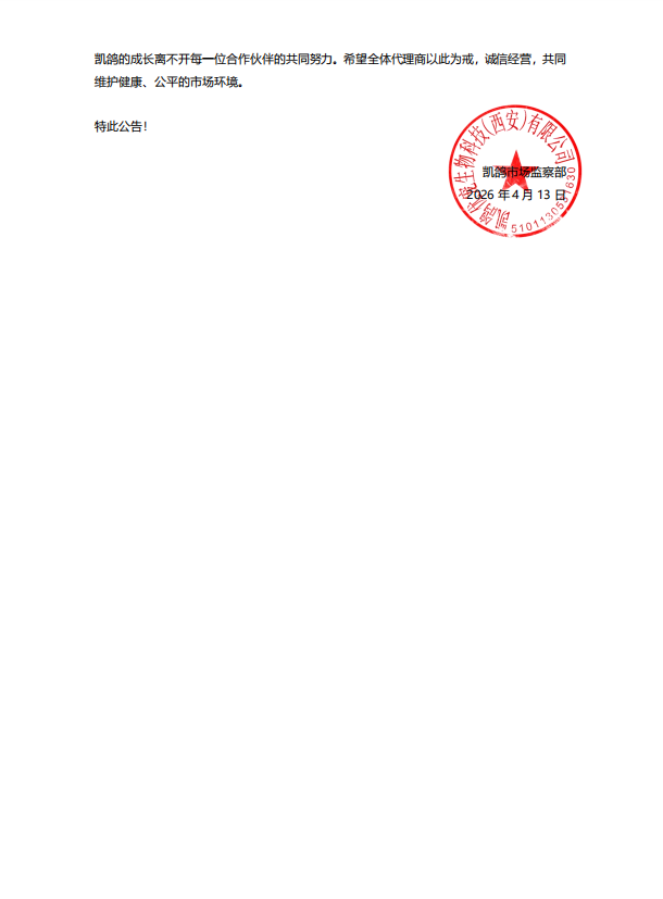 本网站为凯鸽优宠⽣物科技(西安)有限公司(以下简称“凯鸽”)拥有、管理和维护。使用本网站前请您仔细阅读以下条款,使用本网站则表明您已知悉并接受这些条款,如果不接受这些条款请停止使用本网站。对于违反这些规则的行为,凯鸽有权采取法律和公平的补救措施。